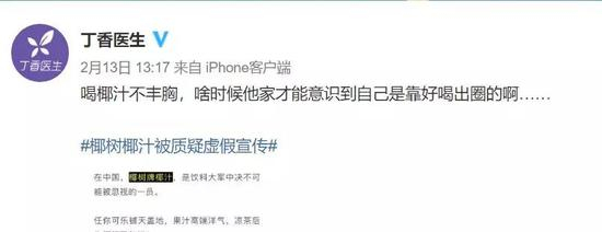 对椰汁丰胸的观点,多位营养学家此前已否认这种说法。中山大学公共卫生学院营养学系主任蒋卓勤曾在接受媒体采访时表示,椰汁并非保健品,没有功能之谈。