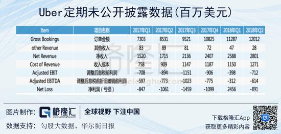 Uber目前也没有上市,以下数据只是Uber定期向投资者提供、并未在政府的公开文件中披露。