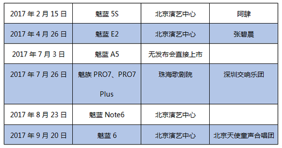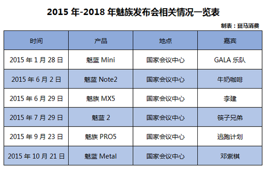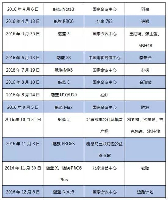 最夸张的当属2016年,魅族邀请十多位歌手,举行了12场发布会,发布了14款新品。