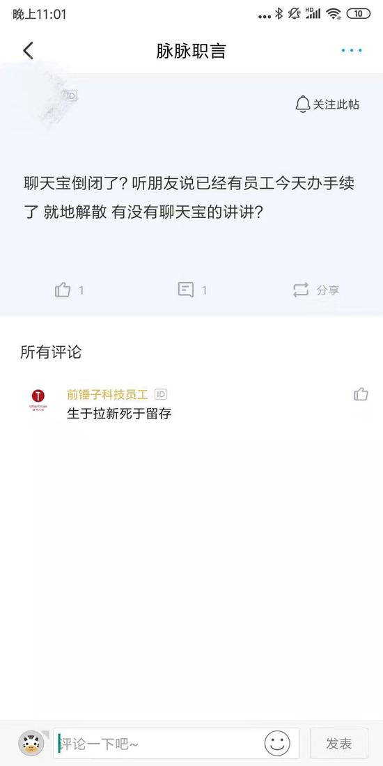据一位接近聊天宝的人士透露,该团队“最初的小几十人”来源于锤子科技,而后随着外部资金注入以及业务扩张,巅峰时曾一度发展到近200人,其中除了部分锤子员工的后续补给之外,大多数为社招人员,“今天被解散的人中,也包括了从锤子过来的。”