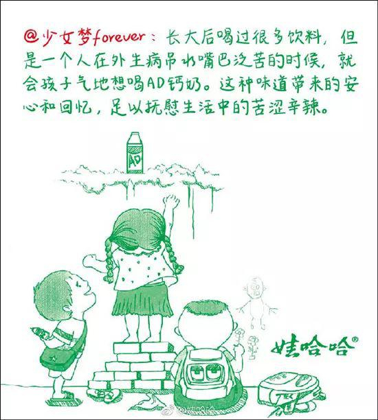 长大后喝过很多饮料,但是一个人在外生病吊水嘴巴泛苦的时候,就会孩子气地想喝AD钙奶。这种味道带来的安心和回忆,足以抚慰生活中的苦涩辛辣;