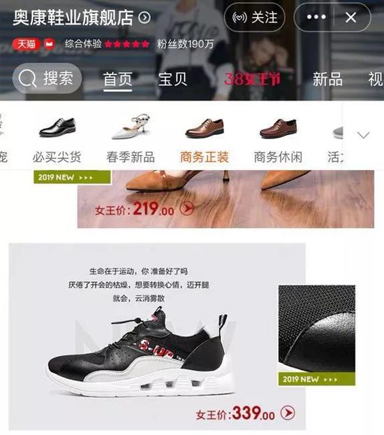 北京商报记者对比双方天猫旗舰店的鞋类发现,在价格上,斯凯奇运动鞋价格主要在239-999元之间;而奥康天猫旗舰店上所显示的运动鞋价格主要在179-469元之间。