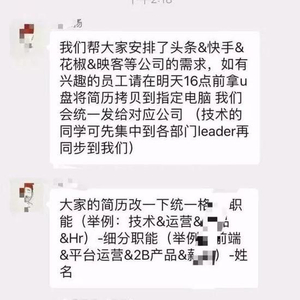 另有网友爆料的一张截图显示,熊猫直播工作人员在员工群中称,已为员工安排了头条、快手、花椒等多家公司的用人需求。