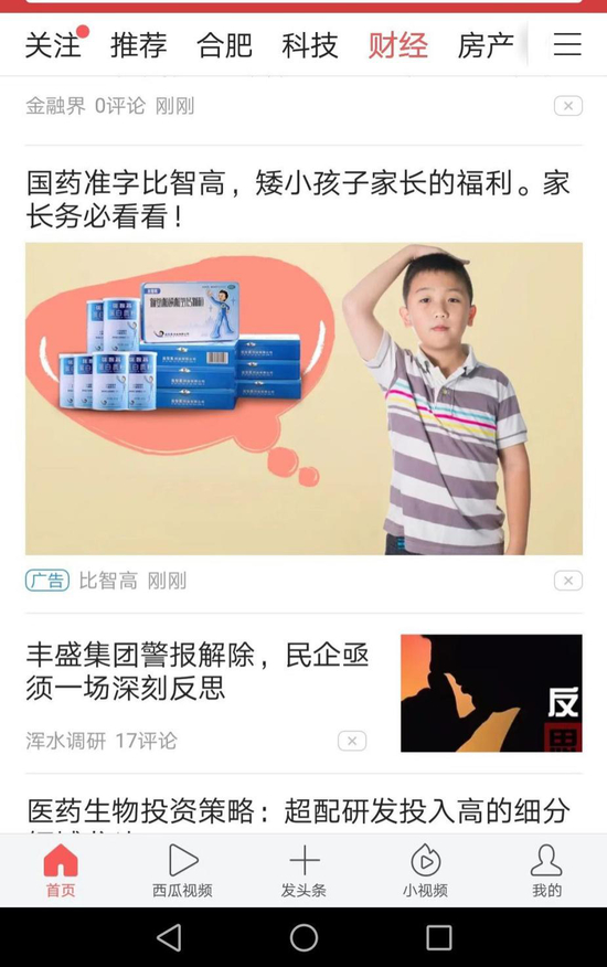 比智高在大肆投放的违法广告宣称“国药准字比智高,矮小孩子家长的福利”。家长阅读上述广告后,会推荐其添加一个名为“健康成长中心”的公众号;一旦家长添加过后,会有自称为成长老师对家长进行洗脑式推销。