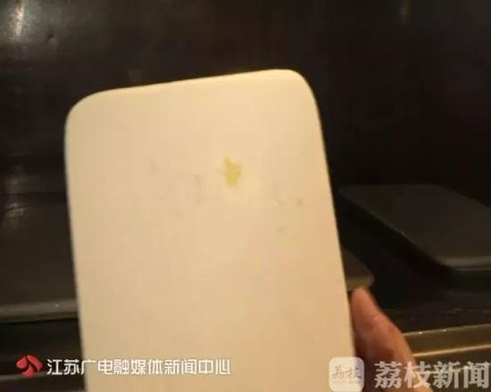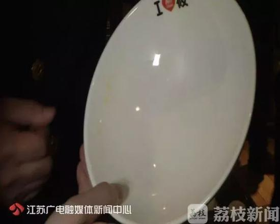 但是执法人员发现,所谓清洗消毒后的餐具竟然上面全是油。比如下图中的这个是黄米糕留下来的,根本擦不掉,明显就感觉像是没洗过。