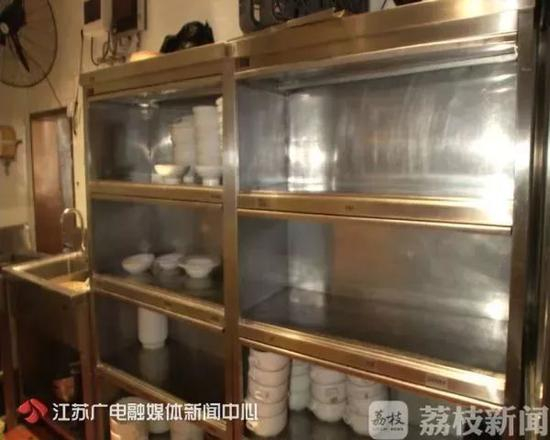 工作人员称,经过去渣、清洗、消毒等步骤后,清洗好的餐具全部被放在保洁柜中,然后直接上餐给客人使用。