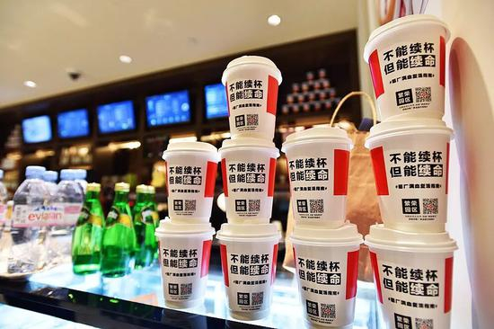 还没上火车,先被一家咖啡馆吸引过去。中企哥点了一杯卡布奇诺,杯子上面写着:不能续杯,但能续命。