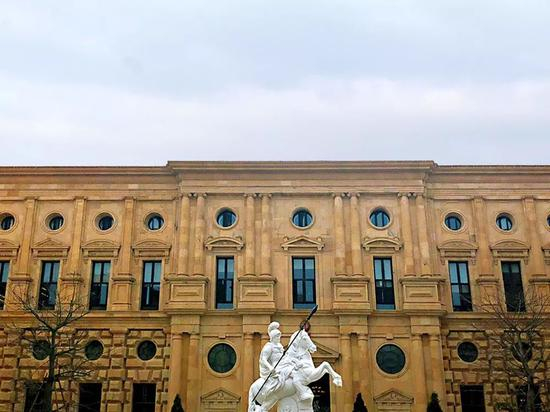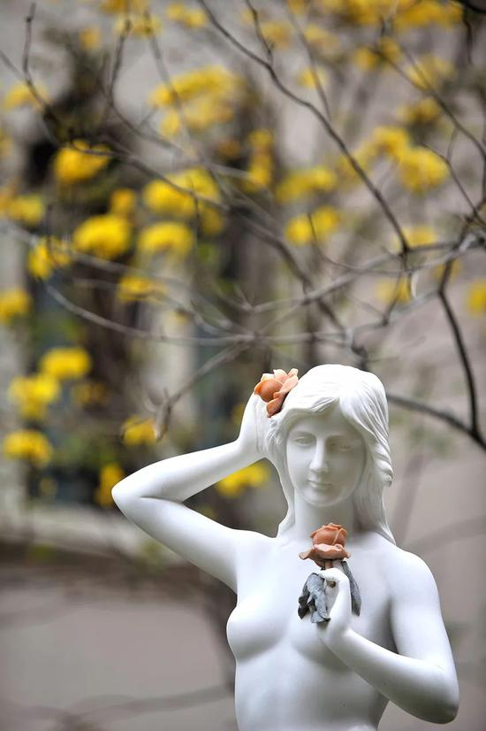 除了犀牛雕塑,造型各异的大理石雕塑也散落在园区各处。