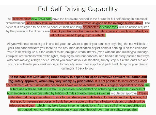也许是为了回应有关自动驾驶系统Autopilot的新调查,特斯拉大幅改变了网站上关于无人驾驶相关的措辞。新的措辞删除了关于Tesla Network的信息,而这一网络其实根本不存在(从本质上来说,这一网络指的就是特斯拉的机器人出租车创意可以让用户在不使用汽车时,将自己的汽车外租出去,用作是出租车)。值得注意的是,一些卖方分析师已经将其目标定价百分比归结为Tesla Network,尽管它并不存在,现在看来似乎也不太可能会问世。