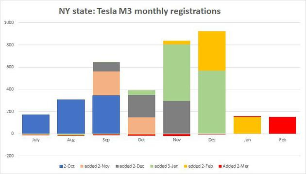 根据纽约州的车辆登记数据显示,Model 3的登记数量也下降了约75%