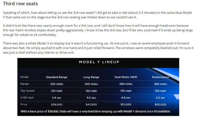 发布会的从始至终,马斯克似乎对Model Y完全不感兴趣,甚至懒得展示车门或第三排座椅,而这是Model Y唯一的区别于Model 3的两个地方。