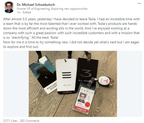 这可能就是特斯拉动力系统以及车辆噪音工程部副主任迈克尔·施韦库茨(Michael Schwekutsch)在Model Y发布后不久便宣布辞职的原因。这可能意味着,在未准备就绪的情况下,马斯克就匆忙发布了Model Y。