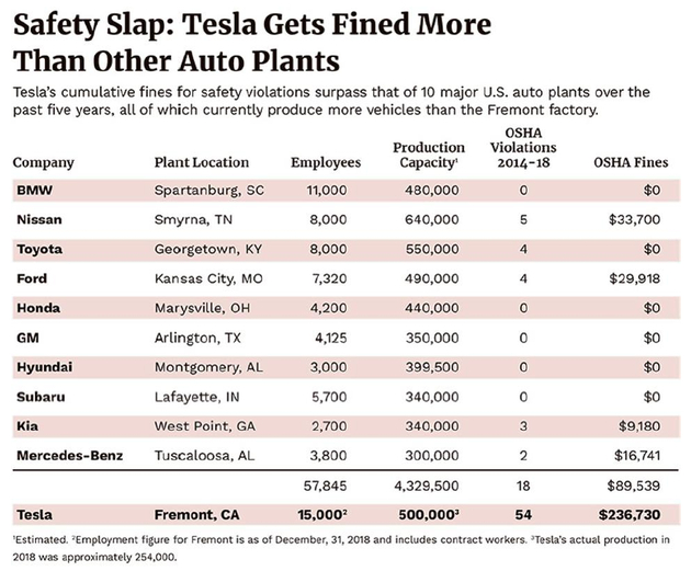 与此同时,根据《福布斯》的报道,特斯拉弗里蒙特工厂发生的可报告事故和接受的罚款是美国十大汽车制造商合计的三倍。特斯拉的弗里蒙特工厂一直也没有组建工会。