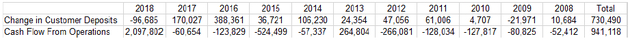 C. 2018年,特斯拉的账目变动中,还在资产负债表中将客户定金一项增加了5840万美元。即便如此,定金数额还是减少了。
