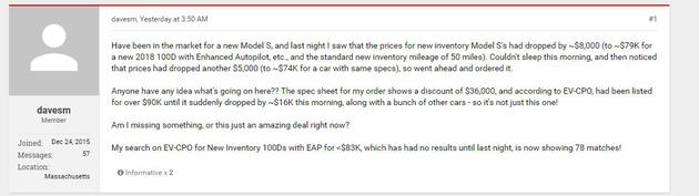 “新车”待售时间越长,其价值损失就越多。在Twitter和各种特斯拉汽车俱乐部论坛上,有一些有趣的报道称,即使在今年3月份,买家也可能收到2018款Model 3。