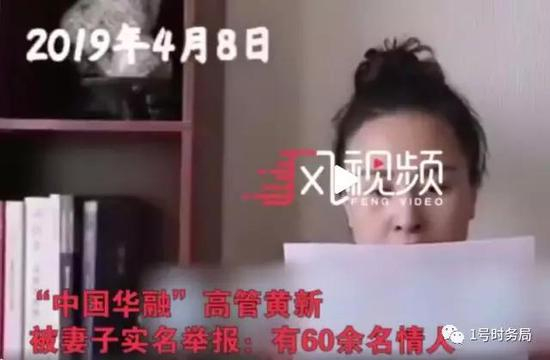 网上流传的一段视频当中,举报人名为万莉莉,自称中国华融发展研究部高级经理黄新的妻子。她表示,她丈夫黄新涉嫌违反政治纪律和政治规矩贪污受贿,拥有情人60多名,