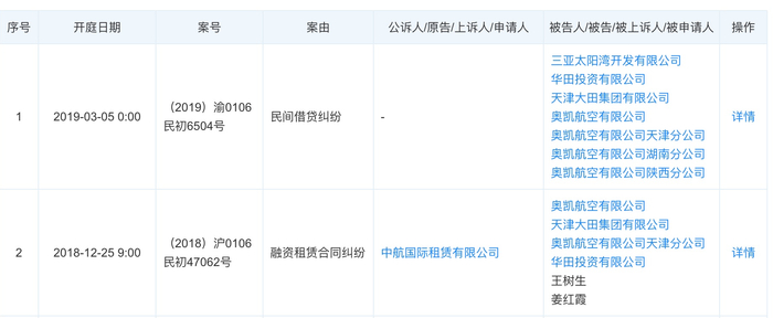 华田投资的资金问题从诉讼信息中或也可见一斑。据天眼查显示,华田投资在2018年12月因融资租赁合同纠纷,被中航国际租赁有限公司告上法庭;2019年3月,华田投资又因民间借贷纠纷成为被告。