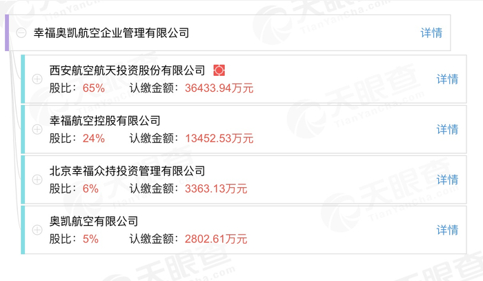 然而,主营支线的振兴计划在2015年以剥离支线告终。2016年,奥凯航空正式与幸福航空有限责任公司整合支线业务,成立幸福奥凯航空企业管理有限公司(以下简称“幸福奥凯”),奥凯航空持46%。2018年,幸福奥凯被幸福航空和奥凯航空公开转让。目前,奥凯航空仅持有该公司5%股权。