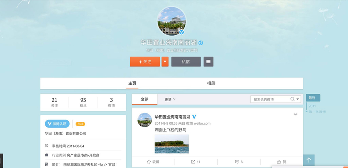 华田(海南)置业南丽湖的官方微博  图源:微博截图