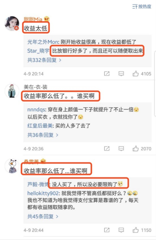 对于此次余额宝取消额度限制,不少投资者认为,收益太低不再想购买。但也有余额宝用户认为,相对于银行存款还是青睐余额宝,觉得余额宝更加方便。