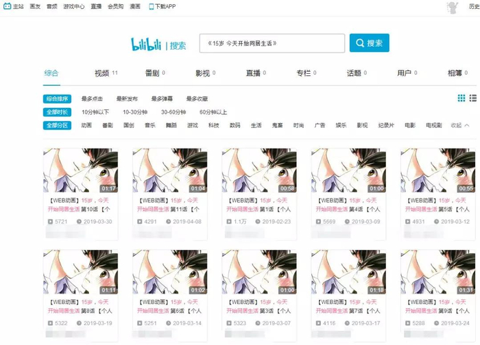 4月8日,记者登陆B站,点击主站番剧连载动画一栏,就看到名为《15岁今天开始同居生活》的动漫作品。