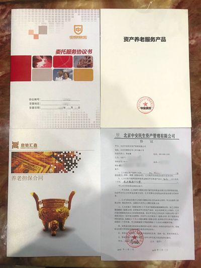 走完上述程序,中安民生的业务员会带着老人到公司的服务大厅签署三份协议:一份委托中安民生投资理财的《委托服务协议书》;一份由中安民生承诺向出资方归还本息的《协议》;一份由另一公司为老人们担保的《养老担保合同》。“但那个担保公司就是一个空壳公司,真出事了,没有偿债能力。”赵德芳说。