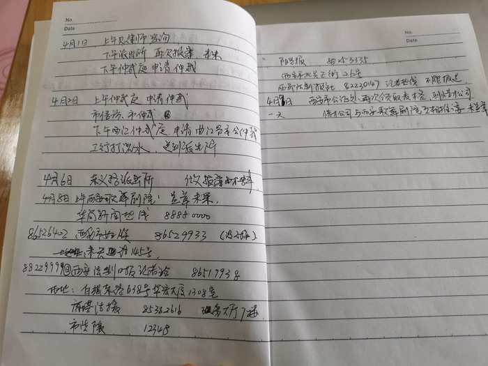 冯远会把每天的行程详细记录下来。新京报记者周小琪?摄