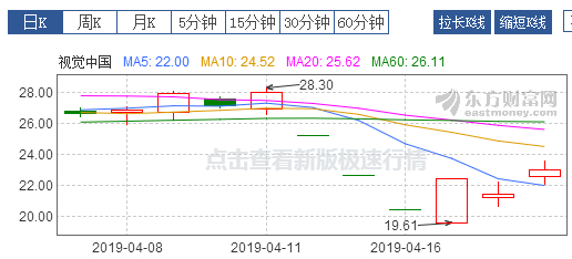 不过,在连续3个跌停之后,视觉中国4月17日开始上涨并于当日涨停,截至4月19日收盘对应市值161.27亿元,但相比于4月11日仍然下跌30亿元有余。