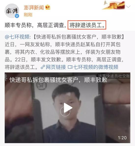 恶心!快递员私拆女客户包裹还发信息骚扰!顺丰官方这样回应