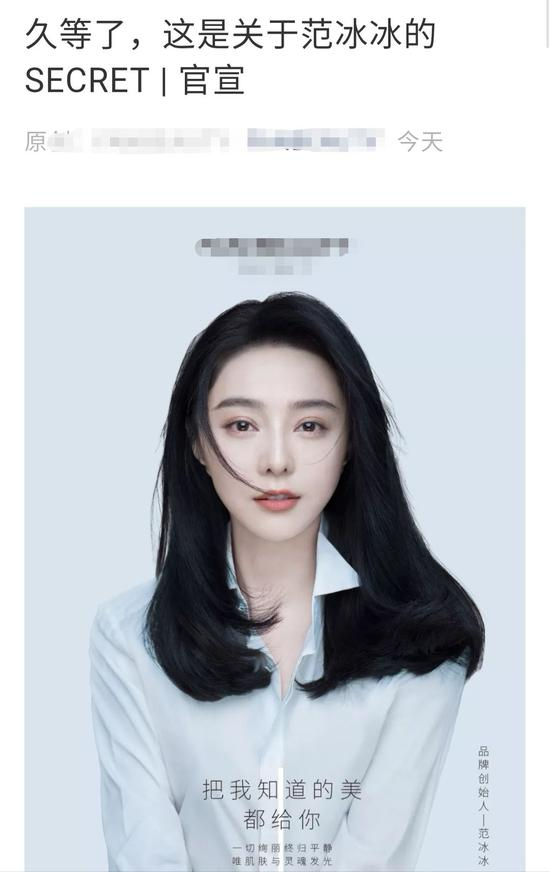 近日,某品牌微信公众号发布了一篇“久等了,这是关于范冰冰的SECRET”的文章,正式宣布属于范冰冰的第一款面膜面世。