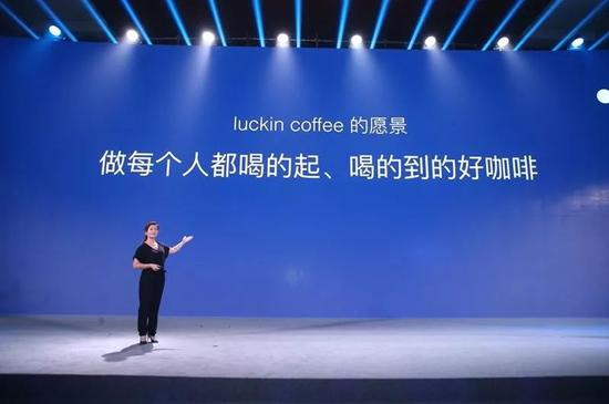 △钱治亚宣布瑞幸咖啡的品牌愿景。