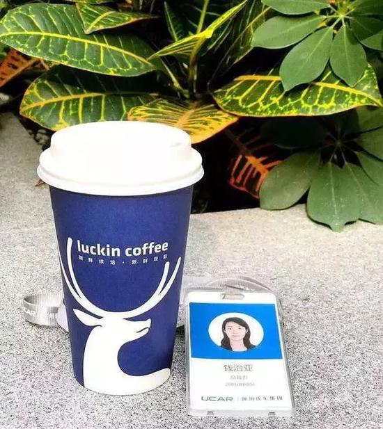 △离职前钱治亚在朋友圈更新了一张照片:桌子上有一杯瑞幸咖啡和一个神州优车的工牌。