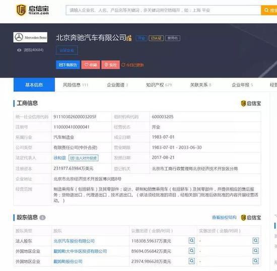 曾几何时奔驰是中国销售最为强劲的汽车公司,根据启信宝的数据显示,北京奔驰汽车有限公司是奔驰在中国最重要的合资生产厂商,其注册成立于1983年,由北京汽车、戴姆勒股份、戴姆勒大中华区投资等三家共同出资设立,现阶段有正式员工10296人。