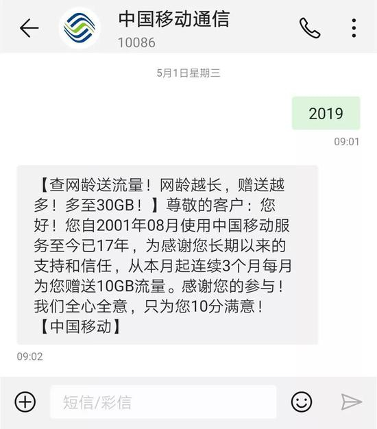 中国移动这什么套路?“查网龄送流量”最高获赠30GB