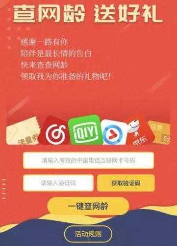 中国电信暂无回复,但已经试水“查网龄送好礼”活动,只限指定的互联网套餐号码参与,所赠礼物为爱奇艺、优酷VIP会员,京东券等。