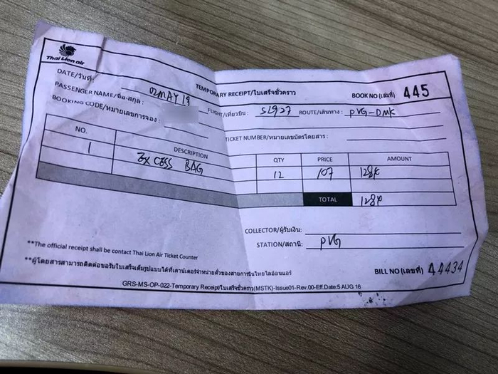 与此同时,狮航客服确认,泰国国内托运柜台价格是295泰铢/公斤,是官网价格的约10倍;国际行李托运的柜台价格是1001泰铢(折合人民币214元)/公斤,这差不多是官网价格的20倍。