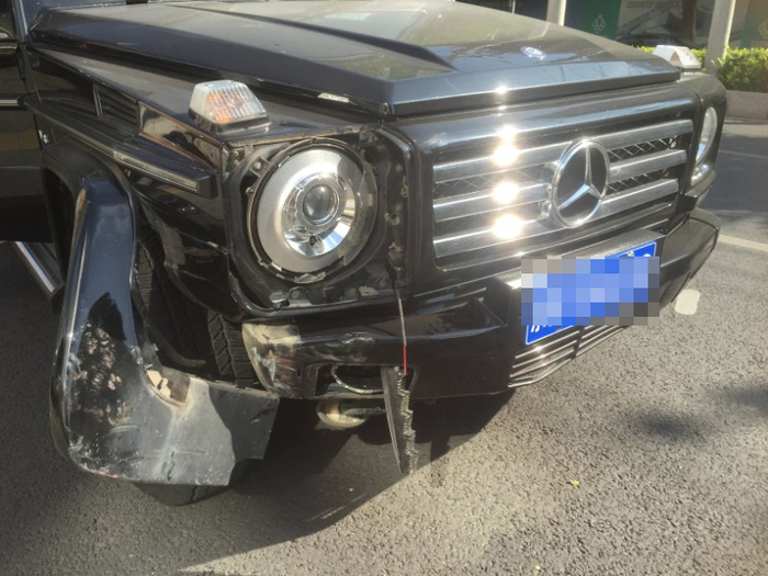 董先生告诉澎湃新闻,他于2011年购买了这辆进口的奔驰G500越野车。2017年9月5日,他行驶在北京市东城区幸福大街时,剐蹭到隔离桩。他马上打95518向中国人民财产保险股份有限公司(以下简称中国人保)报案,确定无人员伤亡,是单方事故。随后,他接到利星行员工电话,要他过去维修。