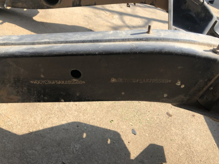 董先生找到被换掉的原车纵梁,发现上面有两个车架号。