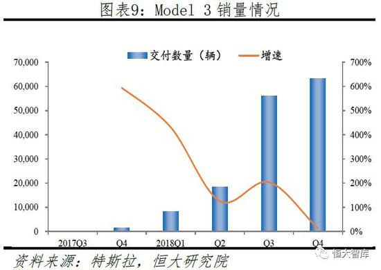 Model 3继Model S后,成为特斯拉成功开拓市场的标志性产品。Model 3于2016年3月公布、2017年年底交付,标准版起步价3.5万美元、续航里程354公里,极具性价比。随着产能爬坡,Model 3在美国的销量超越同类型的宝马5系、奔驰E级、奥迪A6等传统豪华燃油车型,全年销量超过14万辆,市占率达35.7%,成为2018年美国中型豪华轿车市场冠军。