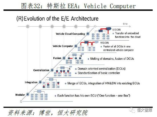 一、软硬件解耦、算力集中化。可以真正地实现硬件标准化和软件开发重复利用,既实现供应商可替代,也可以大大缩短软件迭代周期,同时为日后第三方软件开发扫清了障碍。车辆将成为移动的智能终端,同时大量计算工作可以集中至车载中央处理器甚至云端,减少了内部冗余同时车联网协同成为可能。