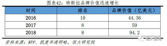 四、品牌、营销与服务:特斯拉从来不做广告,但CEO马斯克凭借成功塑造的“硅谷钢铁侠”人设和Twitter互动,为特斯拉带来超高流量和媒体曝光度。“2018年BrandZ全球品牌价值100强”榜单显示,特斯拉品牌价值达到94亿美元,超越保时捷等老牌豪车品牌。同时,特斯拉采用了直营模式而非传统经销体系,利用软件+OTA的方式为用户提供车辆全生命周期的售后服务,进一步改善用户体验。