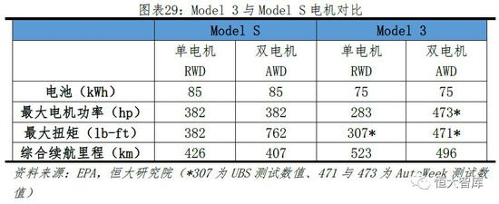 Model 3对传统开关磁阻电机做了一定的改良:在定子加入少量稀土,并设计了控制算法来平滑扭矩波动,最终提高了电机输出功率。Model 3的永磁开关磁阻电机具有体积小、成本低(稀土使用量非常少,而且无需使用铜芯,降低铸造成本)、功率高等优点。相比于Model S/X感应电机83%的能量转化效率,Model3的能量转化效率提升至89%,即89%的电能可以最终转化为驱动力,这样便进一步降低了电耗,提高了续航里程。