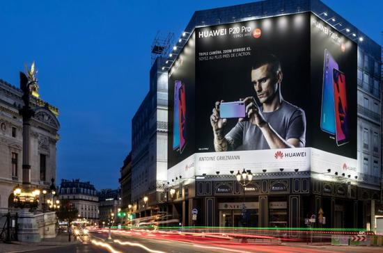 大家熟悉华为,可能是从手机开始的。巴黎街头有很多这样的广告牌,这是华为最新的手机P30。大家可能更熟悉这位先生,格里斯曼,他不仅是法国的英雄,也是华为手机的品牌大使。