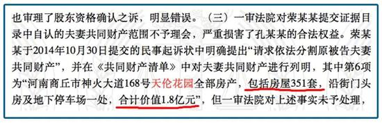 天伦花园,就是蓝翔师生与孔素英父亲孔令荣殴斗的地方,而孔令荣之所以搬到小区去住,也是为了“保护”财产。根据此前判决书中提到的争议财产,就包括位于河南省商丘市天伦花园的351套房产以及沿街门房和地下停车场,价值1.8亿。
