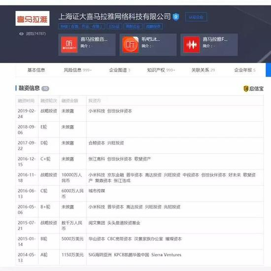 然而,2月25日报道,喜马拉雅发生投资人变更信息,新增三家投资方:天津金星创业投资有限公司、上海证大喜马拉雅网络科技有限公司、宁波创世喜雅股权投资基金合伙企业(有限合伙)。其中天津金星创业投资有限公司为小米旗下的全资子公司,据悉天津金星创业投资有限公司占股4.37%。