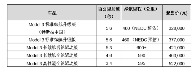 据新浪科技统计截至目前,中国在售的Model 3车型共有五款: