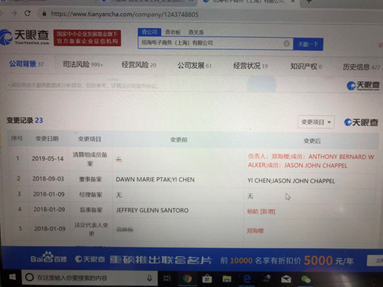 《商学院》记者从天眼查获悉,所谓的清算,系1号店此前的运营主体——纽海电子商务(上海)有限公司新增了清算信息,清算组负责人为郑海樱,该公司两大股东分别为上海传绩电子商务有限公司、新岗岭有限公司,各持股50%;2018年8月,该公司曾因未履行法律文书确定义务而被列为失信被执行人。