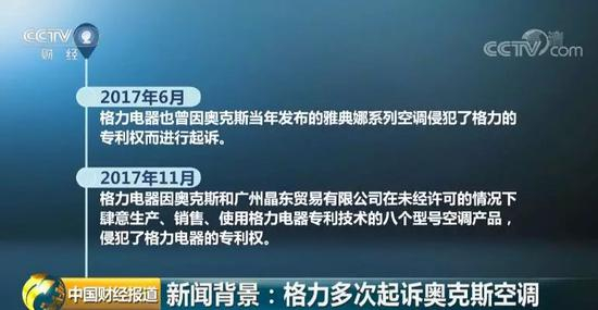 2017年6月,格力电器也曾因奥克斯当年发布的雅典娜系列空调侵犯了格力的专利权而进行起诉。