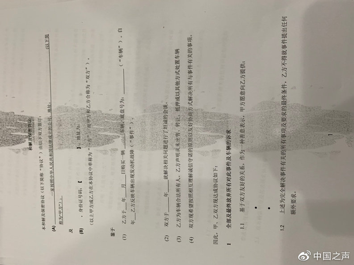 王先生向中国之声记者出示了一份渭南利之星奔驰4S店提供的《和解及保密协议》,大致内容是王先生放弃所有对此事件及车辆的诉求、4S店签署这份协议并非承认责任或过错、王先生要对此事严格保密且签署协议完全处于自愿,一旦违约要支付40万的违约金。4S店要收购王先生的奔驰车,最初的价格是46万,后又提高到50.5万。