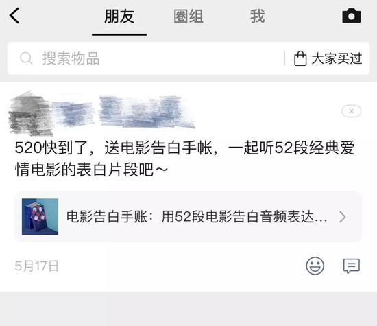 微信好友发在好物圈的商品推荐被呈现在“朋友”一栏下,从一些用户反馈来看,目前大家发好物圈的频率并不高。“圈组”有点类似微信群,用户自建圈组,发布在好物圈的商品可以选择好友查看范围,被“圈组”的人看到或者被所有朋友看到。